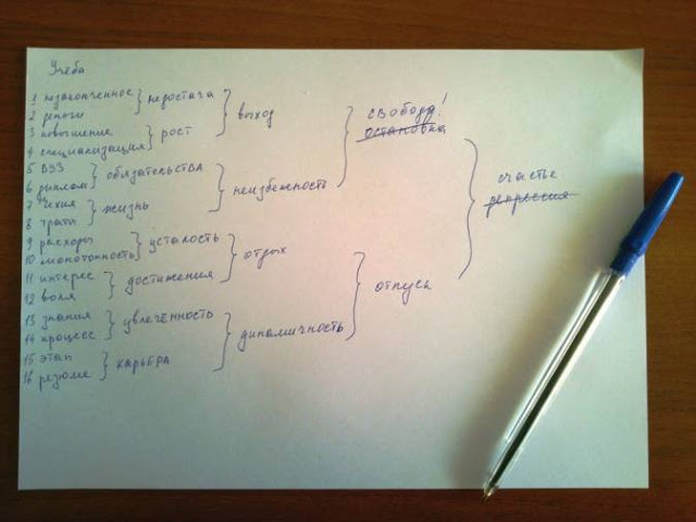 Dobijeni spisak podijeli u parove (1. sa 2., 3. sa 4., 5. sa ​​6. itd.) zagradama. I tada za svaki par upisuj novu asocijaciju. Samo pažljivije! To će biti samo riječi, bez vezivanja za početno pitanje. To jest, ako si prvo smislio 16 asocijacija za sport, sada čak i ne misli na sport. Samo napiši asocijacije koje u tebi izazivaju ti parovi riječi.